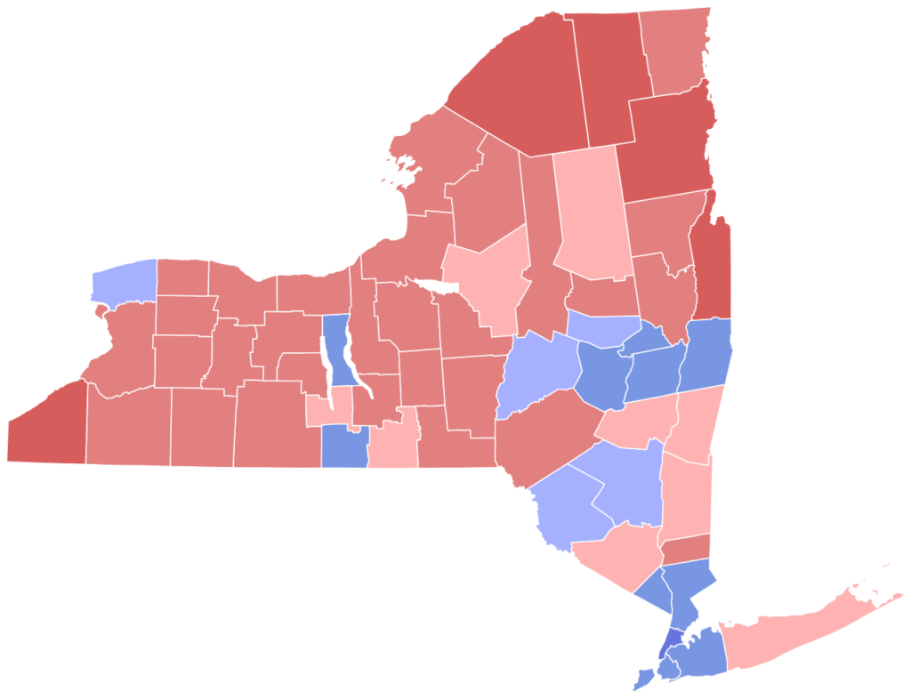1885 New York Gubernatorial Election (Republicans in Red, Democrats in Blue)